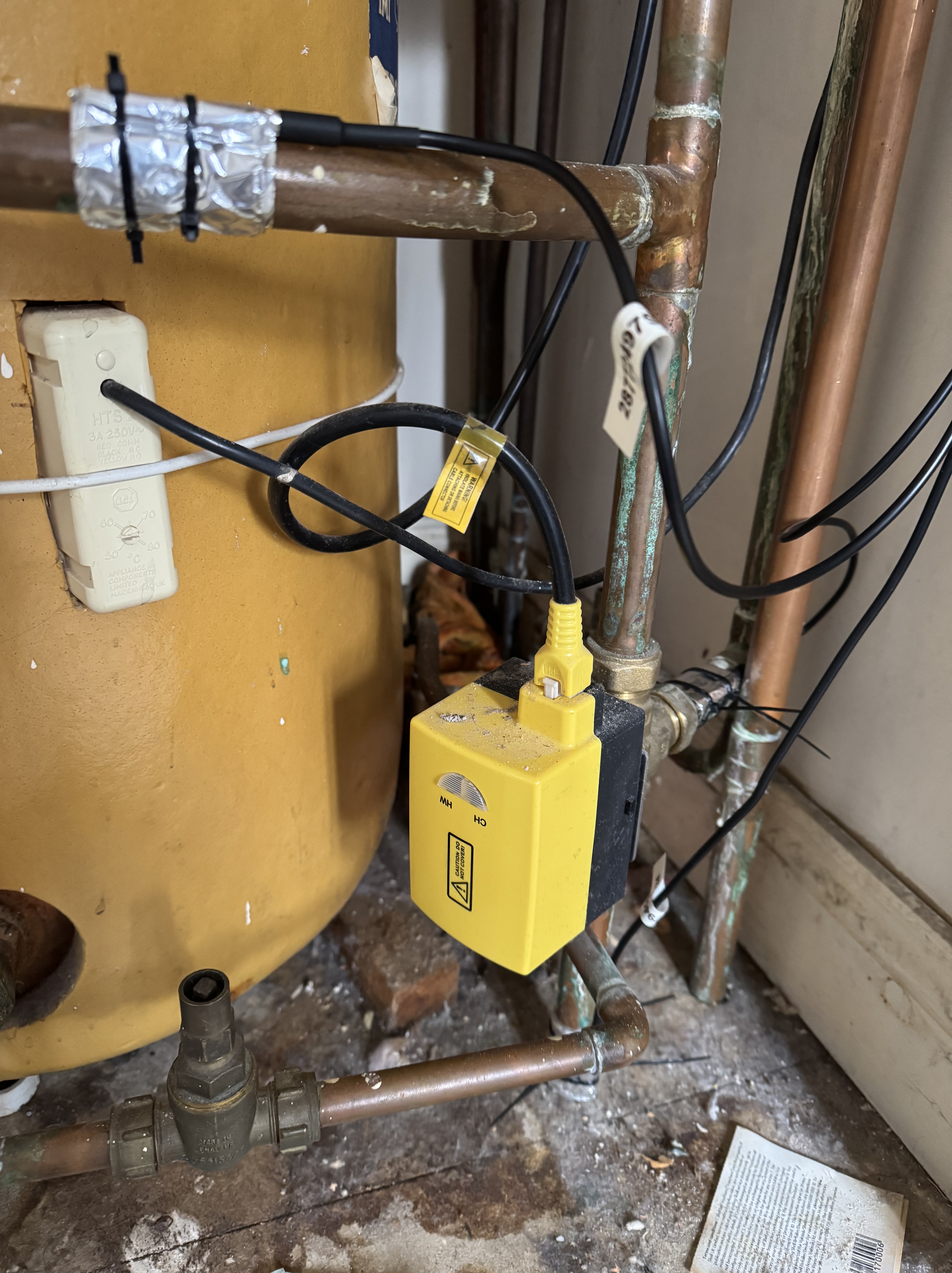 Due to the short distances in the airing cupboard, I placed the hot water and radiator sensors as far from the valve as possible to try and minimise the pick up of temperature conducted through the pipe itself, trying to minimise reading temperature on the radiator sensor when the water is being directed to the hot water tank, and vice versa.
